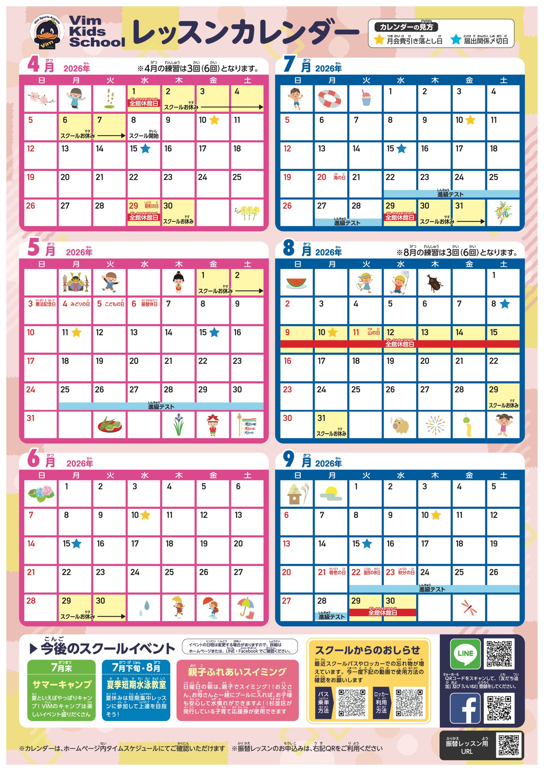 ▼2026年4月〜2026年9月のレッスンスケジュール